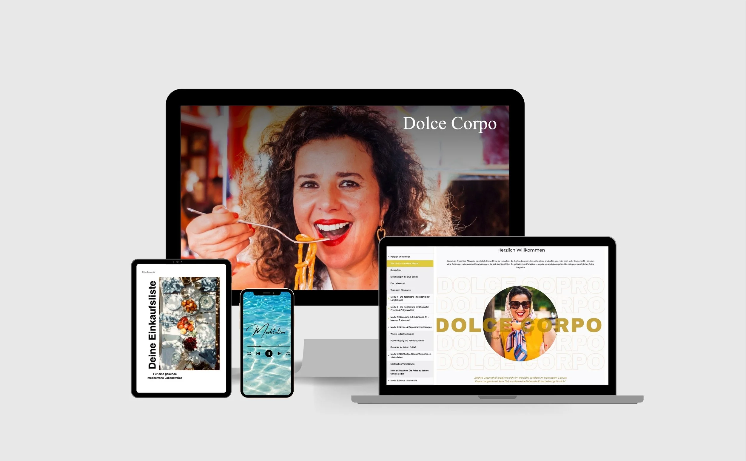 DOLCE CORPO ist ein 90-Tage Online-Transformationskurs von Loredana, basierend auf der Blue Zone Forschung, der dich Schritt für Schritt zu mehr Energie, Schmerzfreiheit und Vertrauen in die Weisheit deines Körpers führt.